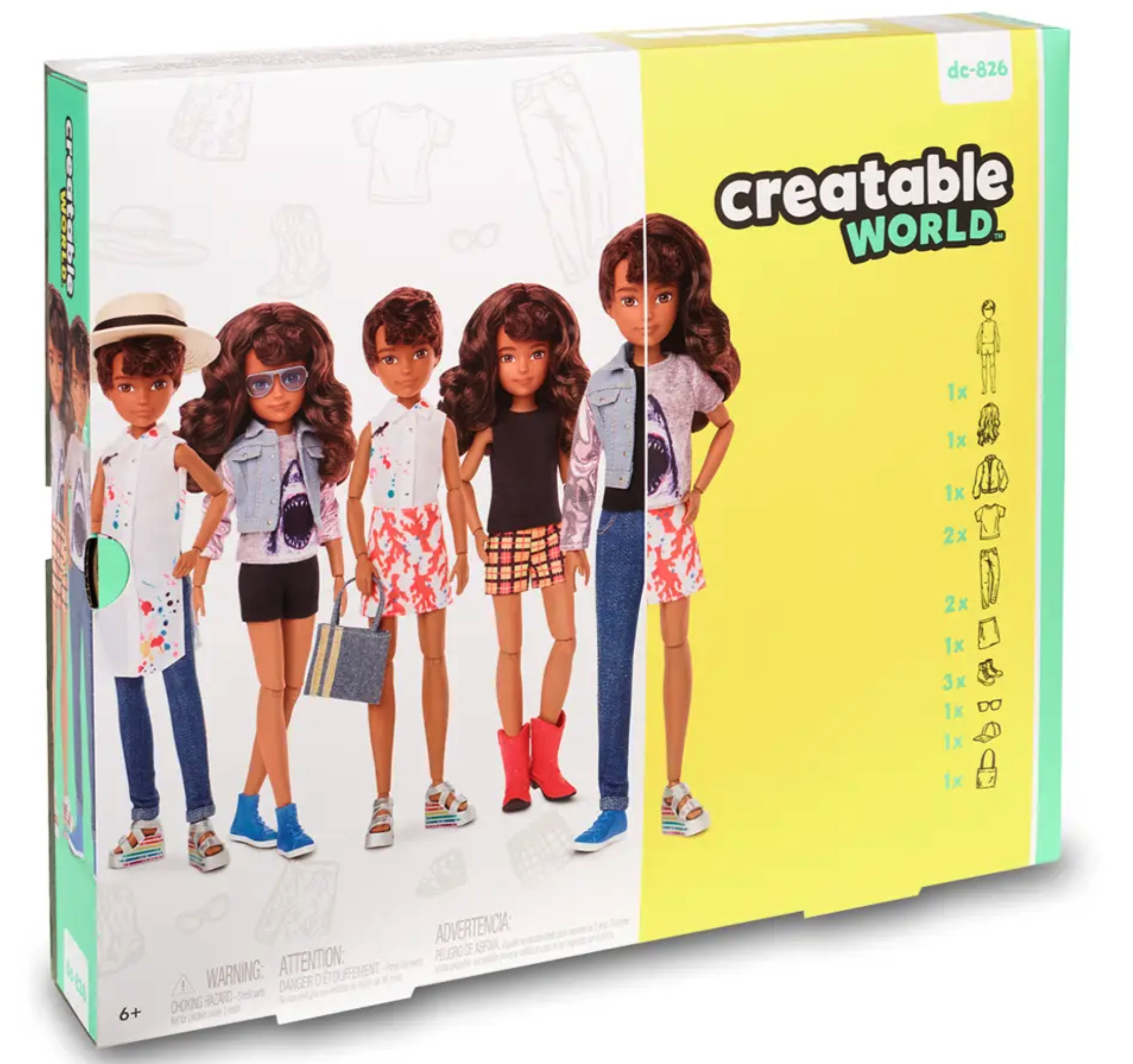 Dolls and fashions are numbered, rather than named, so kids feel welcome to create their own characters. Neutral pronouns are used. Language is optimistic and inclusive.