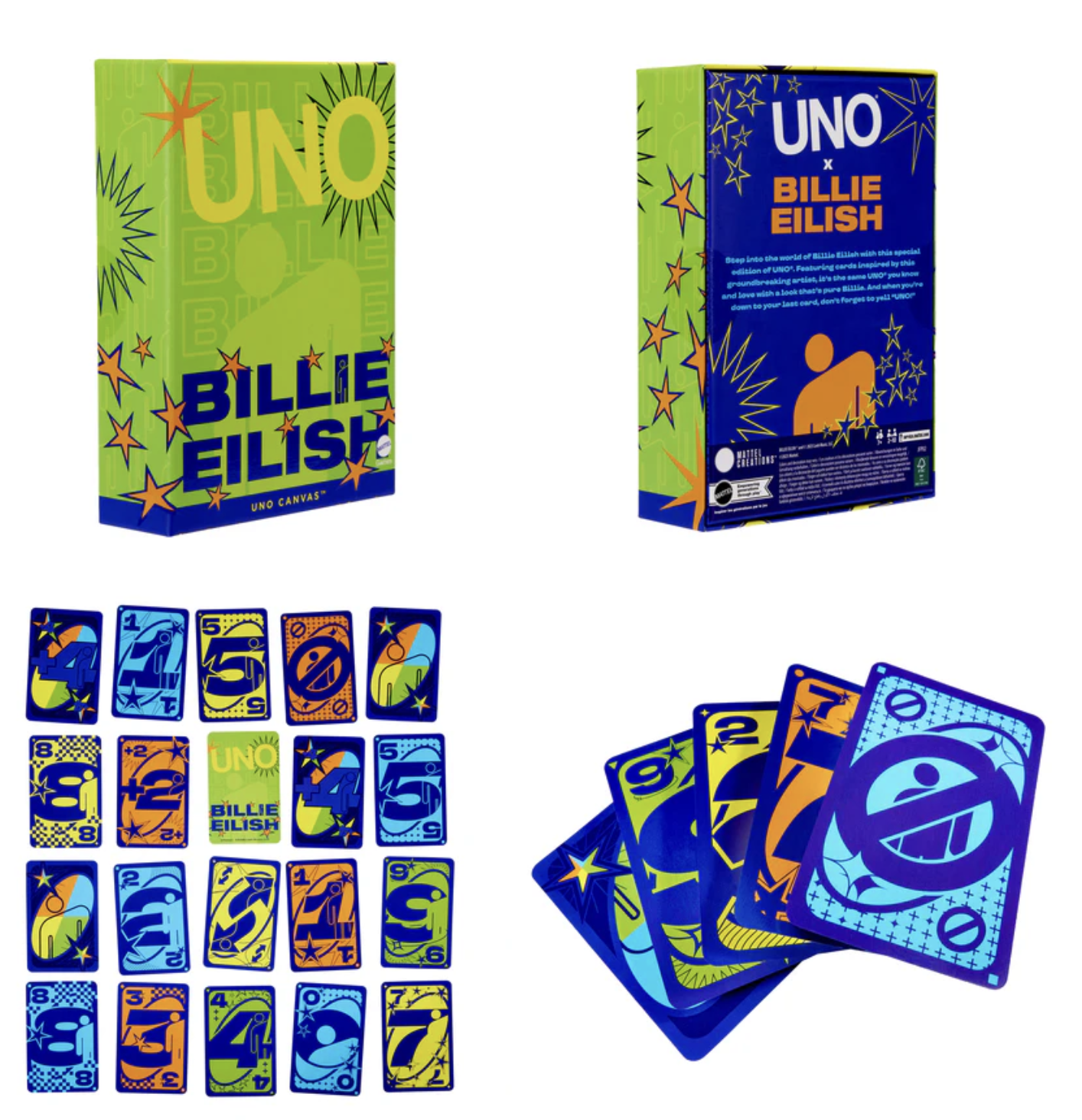 Billie Eilish designed this UNO Canvas deck featuring colors, symbols and numbers that showcase her artistic aesthetic.