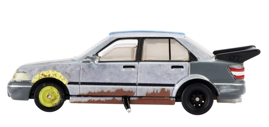 Mattel partnered with art and media company MSCHF to create a surprisingly new take on a a Hot Wheels vehicle. Inspired by early 1990s Japanese imports, it has three different wheels, is dented, rusted, and has been not-so-professionaly repaired.
